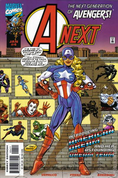 Presenting Turning Points: a month where the MC2 heroes face critical moments which will define their futures! It¹s a major moment in the history of A-NEXT when Thunderstrike, Stinger and J2 discover that Mainframe is already auditioning possible additions or replacements for the team! The first candidates: American Dream and her Dream Team ‹ Freebooter, Crimson Curse and Bluestreak! And, as if that wasn¹t bad enough, the new Avengers are asked to protect a visiting Wakandan Prince ‹ T¹Chaka, the son of the legendary Black Panther! Unfortunately, the Soldiers of the Serpent plan to assassinate him on national television! And, to further complicate the situation, T¹Chaka¹s guardian just happens to be Vibraxas (a former member of the Fantastic Force) ‹ and the prince himself has a dual identity of his own as the mighty Coal Tiger! Plus: cameos by S.H.I.E.L.D. and Jubilee!
