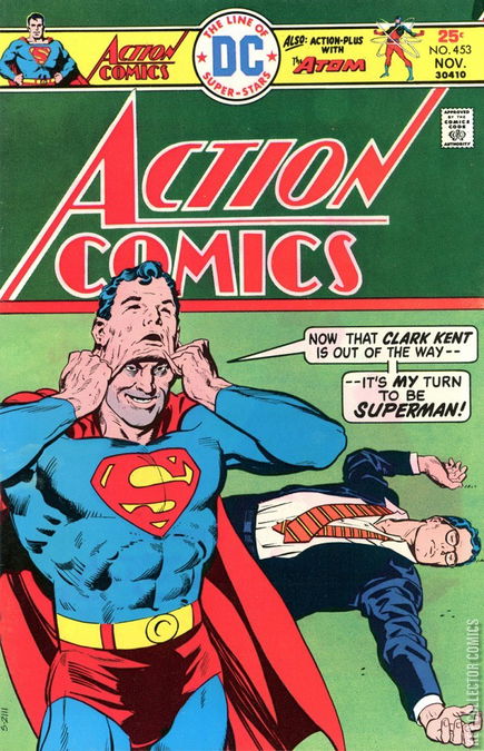 SUPERMAN'S FANTASTIC FACE-SAVING FEAT! / DANGER: THOUGHTS AT WORK! A criminal uses a device to change facial features with Clark Kent to get close enough to take a shot at Superman. Dr. Speer asks Ray to help him fix his Actualizer machine which is causing people to act out their subconscious thoughts.