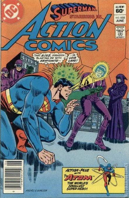 H.I.V.E. AND GO SEEK! / CARNAVAL OF CATASTROPHE! When the H.I.V.E. strike in Metropolis again, Lois Lane masquerades as one of their female members whom she has captured, and finds herself part of a squad assigned to kill Superman with Kryptonite ray-guns. The Atom becomes Ray Palmer to deactivate the nuclear bomb, but inadvertently gives away his secret identity to two crooks, who die soon afterward.