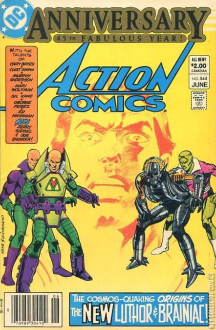 LUTHOR UNLEASHED! / REBIRTH! Barely alive after his latest fight with Superman, Luthor heads to Lexor to recover, where he meets his son for the first time; Meanwhile, back on Earth, one of Luthor's robots takes revenge in his master's stead. With Superman's unwitting help, Brainiac escapes his prison, experiences the depth and breadth of the universe, and reforms as an entirely new kind of being; Then Brainiac lures Superman to Systus 2, where he robs the hero of his powers, and greets him in his new form for the first time.