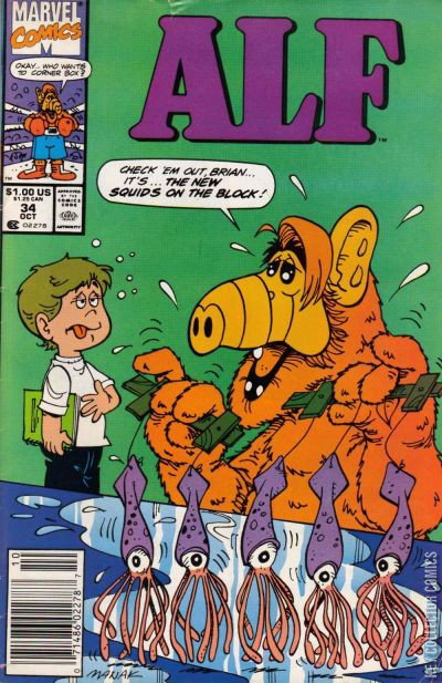 Kate needs a magician for Brian's birthday party and ALF is available but has to first demonstrate his magical talents in "That Old Melmac Magic." When Lynn juggles boyfriends, ALF tells Lynn about his great-great grating grandaunt in "Gone With the Rind," which amounts to an ALF version of "Gone With the Wind." Issue also has a one-page ALF gag strip.