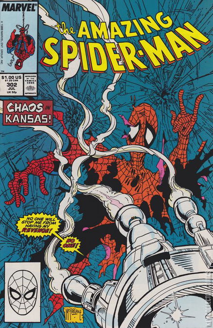 (MID)AMERICAN GOTHIC! In Emporia, Kansas, Peter Parker is shown around the research laboratories of On-Line Research by Martin Jacobi. Jacobi has offered Peter a job as the chief assistant of the experimental division. Peter isn't sure that he will accept the job, although he is very impressed with the facility as it offers him the employment opportunities he has been seeking since high school. Peter still can't get over how he was recommended for the position by Curt Connors, who was the Lizard, is as much a friend of Spider-Man as he is an enemy. Peter is then shown around the outside of the facility where a new wing is being built. Peter thinks how he couldn't get offered such a position in New York City, but wonders how huge a change moving to Kansas would create for his life. They soon come upon an argument between Doctor Royce Nero and construction boss Wes Cassidy. Royce, a former government employee, is upset that Cassidy's construction equipment is disrupting his delicate equipment. Suddenly, one of the acetylene torches backs up, threatening to cause a massive explosion. Wes Cassidy orders everyone to evacuate the site before it explodes. Peter Parker manages to slip away in the confusion and changes into Spider-Man to see what he can do to help. Spider-Man is glad the area had been evacuated, saving Peter from explaining why Spider-Man is in the area. He sees the flames getting closer to the shed filled with more propane cylinders. Before Spider-Man can swing in and try to put the flames out, he is shocked to see Wes Cassidy running back onto the site at super speed. Right before Spider-Man's astonished eyes, he watches as Cassidy kicks open the back of a pick-up truck and kicks wall insulation into the flames, smothering them. With the danger over, both Cassidy and Spider-Man see each other and take off as neither want to be discovered. Later, back in his civilian guise, Peter Parker is assured by Martin Jacobi that these things don't regularly happen on site. Peter is sure that it was only an isolated accident. Thinking to himself he is surprised to discover someone with super-powers but hopes that is the only surprise waiting for him in Kansas. At that moment in Royce Nero's lab, the scientist begins a test of a new gauntlet that he has constructed. Firing a beam from one of its fingers, the gauntlet causes a rock at the other end of the room to explode. Nero is pleased with the results, confident that his new invention is nearly complete. Meanwhile, back in New York City, Silver Sable has just finished a training session when her Uncle Morty comes in to inform her that the Wild Pack have returned from their mission. There is only one of the six soldiers who is able to stand and he tells her that they were able to locate the Neo-Nazi known as Fritz Kraus, but his organization is much larger than they expected. Hearing this, Sable decides it is time to call in a special operative. Later, at the Cassidy home in rural part of Emporia, Wes Cassady's family head in for dinner. Wes waits outside for a moment longer and is approached by Spider-Man. The wall-crawler explains that he is interested to know how Wes got his powers. As the only superhuman in the area, Cassady is grateful for someone to talk to. Wes takes Spider-Man into the garage and has the hero promise not to laugh when he reveals the source of his power. Wes explains that he was a foreman when On-Line's building was first built. During the construction job a jackrabbit escaped from its cage in a lab. With the creature running loose on the construction site, Wes tried to catch it. However, the jackrabbit bit him. Since then he has the ability to move at super speed. Finishing his story, Wes asks why this is happening to him. Spider-Man suggests that he use his powers to do good. Was points out the idea of wearing a costume and calling himself something like "Bunny-Man" would be ridiculous. He then asks Spider-Man for advice on what to do, unfortunately, the hero has no suggestions to offer, but he promises to keep Wes' powers a secret. Back in Brooklyn, the Sandman returns to the rented room he's been living in under the alias of Sylvester Mann. Unfortunately, he discovers that he has locked himself out again and secretly uses his sand powers to unlock the door. Once inside, his landlady, Mrs. Casada tells "Sylvester" is told that he has a visitor. Going up to his room, he discovers that it is Silver Sable, who tells the Sandman that she has a job for him. While at Bedford Towers, Mary Jane gets a phone call from her husband. He tells her that he is excited about this job prospect and will tell her about it once he returns home in a few days. Mary Jane is afraid of this happening. The next day at On-Line Research, Mr. Jacobi is interrupted by Dr. Nero who comes busting into his office wearing his technological harness. Nero explains that he has come to get his dues, after being forced to retire from government work, he had been working on his riot control gear into an offensive weapon. He then demands that Jacobi hand over plans for a secret project from the safe. At this moment, Peter Parker has arrived at the main gate when the security alarm goes off. Peter decides to sneak off and change into Spider-Man. He catches Nero trashing the facility. As Spider-Man battles Nero, Wes Cassidy watches from the crowd. When Spider-Man is knocked down, he asks Cassidy for help, but he can't bring himself to do it. Eventually, Spider-Man manages to regain the advantage when a test laser is activated during the battle. While Nero is busy dodging this blast, Spider-Man manages to land a blow that knocks his foe out. With the battle over, Wes apologizes to Spider-Man, as he couldn't bring himself to get involved. Spider-Man tells him he understands, telling Wes that we all have decisions to make and live with and walks away. Later, after changing back into Peter Parker, he offers a flimsy excuse about there being a team of Spider-M