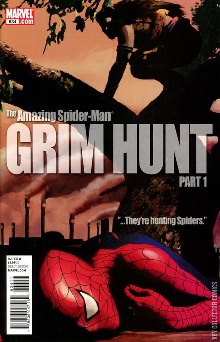 THE GRIM HUNT, CHAPTER 1 / HUNTING THE HUNTER, PART ONE: ADRIFT / SPIDEY SUNDAYS A SPIDER-MAN EPIC TWO DECADES IN THE MAKING BEGINS! Several years ago, one of Spider-Man's greatest enemies, Kraven the Hunter, stalked his last prey, dying with a violent, misbegotten honor. Now, two women claiming to be his wife and daughter have tracked Spider-Man, through the urban jungle, weakening him through the Gauntlet while they prepare to attempt an unholy resurrection. They're hunting Spiders...and Spider-Man's friends and namesakes are in their sights. Written by Joe Kelly and drawn by Michael Lark ( DAREDEVIL ) this is only the beginning of a Spider-summer that will be talked about for years to come. ALSO BEGINNING THIS ISSUE: TWO EXCLUSIVE FEATURES! Original Spidey creator Stan Lee returns with Marcos Martin for a 2-page Spidey Sunday Feature that brings the real world into Spidey's world! PLUS: J.M. DeMatteis , author of the classic ' Kraven's Last Hunt ' returns to the Amazing Spider-Man with Max Fiumara to explore an unknown confrontation between Kraven and Spidey's violent doppelganger KAINE...a battle which promises ramifications on the Grim Hunt itself.