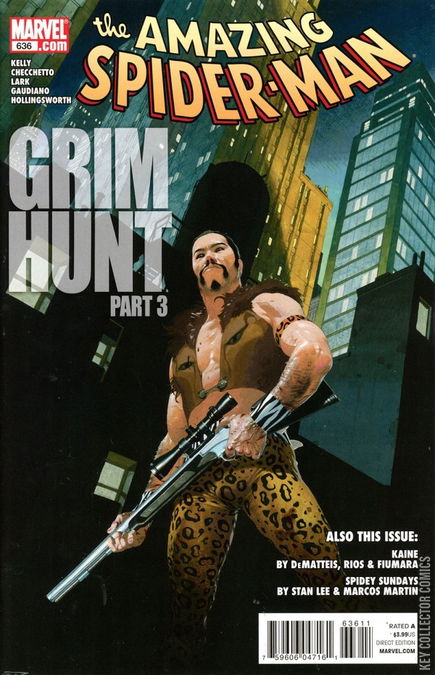THE GRIM HUNT, CHAPTER 3 / HUNTING THE HUNTER, PART THREE: WAR / SPIDEY SUNDAYS The Grim Hunt continues as many Spider-powered characters find themselves prey of the Kraven Family! Guest starring Kaine, Spider-Woman, Arana and Madame Web. Plus Spidey Sunday Feature and Kraven backup stories!