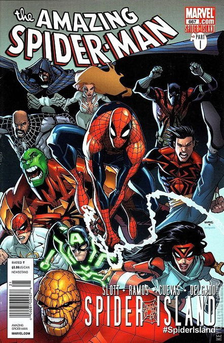 SPIDER-ISLAND, PART ONE: THE AMAZING SPIDER-MANHATTAN The spider-man event of the decade begins! Start Webbing The News! New York City's Infestation is complete and eight million people are plagued! As someone near to Peter Parker's life reveals their spider-abilities, the brilliantly fearsome Jackal rises from the past and begins organizing an army of Spider-powered soldiers. Spider-Man isn't the only hero affected as the threat goon grows bigger than any one Fantastically Friendly Neighborhood Avenger can handle. Best-selling Spidey creators Dan Slott and Humberto Ramos spin a Spider-epic that turns Peter Parker's BIG TIME into a BIG MESS. Bad romance, death-defying violence and one man facing his FINAL fearsome destiny...this one's got it all! Simply put, pal....YOU NEED THIS!