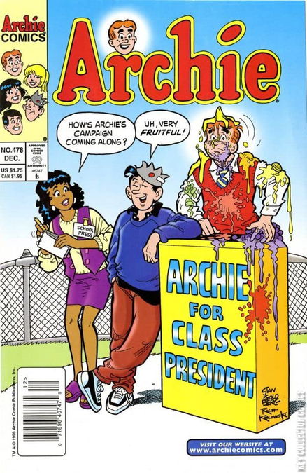 The Last Straw" by Joe Edwards & Stan Goldberg: Archie makes a real 'dummy' of himself when he loses the school play's prop scarecrow-three guesses who the scarecrow's "understudy" is! "Faculty Frolic" by George Gladir and Stan Goldberg: the kids get the faculty to teach them fifties dances for a charity oldies contest, but when Weatherbee and Grundy start cutting the rug, it's a case of 'trip, fall and lie,' instead of 'flip, flop and fly!' "The Big Sleep" by George Gladir and Stan Goldberg: stricken with insomnia at a sleepover, Archie tires himself out trying to fall asleep-and wakes up Jughead in the process! "What, Me Worry?" by Mike Pellowski & Stan Goldberg: when muscular Mick Strong moves to town, the guys think he'll outshine them on the sports fields. They're relieved to find out he's a cheerleader... until all the girls start paying attention to him instead of them!