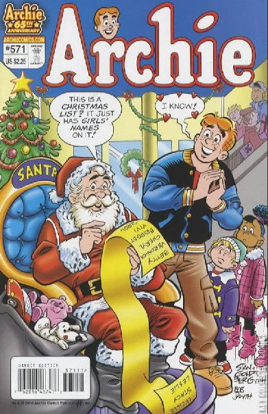 Issue 571 features these stories: "Christmas Toy Story": While playing Santa, Archie learns of a child's wish to get an ultra-rare, super-expensive collectible toy for Christmas... a toy so rare, it would take a miracle! "The Spoiler": Jinx Malloy is back, and strangely, this time he's brought nothing but good luck for Archie and Jughead! "A Really Special Gift": Archie has just the cure for Betty's holiday blues... and it's more than money can buy! "Freezer Burn": Fred gets hot under the collar about heating his house in the winter.