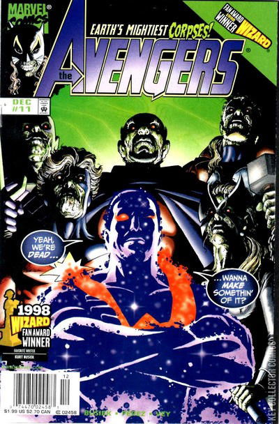 ...ALWAYS AN AVENGER! Scarlet Witch returns to Avengers Mansion only to be captured by the Unliving Legion. Meanwhile, the Grim Reaper has established a mystic force wall around central park and gloats over the fallen Avengers. However, Wanda successfully taps into the good nature of the Unliving Legion that was suppressed by the Grim Reaper and she frees them. They freed the Avengers and together they keep the Grim Reaper busy while Wanda turns her chaos magic to restoring Wonder Man to life. Wonder Man then helps take his brother out of action.