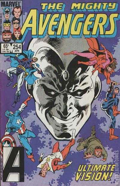 "Absolute Vision" Returning to their headquarters, the Avengers search for the Vision, while the West Coast team sends Wonder Man underwater to enter the mansion through the submarine pen. The Vision confronts each of his teammates in a different holographic form: the Scarlet Witch, as a human version of himself; Captain America, in his normal aspect; Wonder Man, in casual attire; Starfox, as a floating head; and Hercules and the Black Knight, as a costumed warrior. He explains to them how a control crystal implanted in his brain upon his creation by Ultron has always governed his memory and emotions, but has also allowed outside forces to take control of him. His recent link with ISAAC expanded his mental capacity, allowing him to mimic Starfox's power to stimulate the brain's pleasure centers and thus convince the Wasp to step down as chairman and the government to approve the team's expansion, all in furtherance of his plan for world control. His teammates, however, each present reasoned arguments that make his plan unworkable, and the android regretfully abandons his scheme. Locating him in the mansion's sub-basement lab, they manage to restore his mind to his body, whereupon the Vision rips the control crystal from his brain, then prepares to deal with the repercussions of his actions.