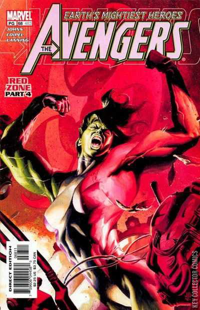 RED ZONE PART 4 - THE GREAT ESCAPE The Red Zone continues to grow at an exponential rate. The Avengers discover that this secret chemical base was under the direct supervision of the US Secretary of Defense, Dell Rusk. Jen Walters transforms back into the She-Hulk, but she's gone totally savage and smashes around the Avengers. Falcon meets up with Gyrich to discuss their spying on Rusk and learn that he is in fact the Red Skull.