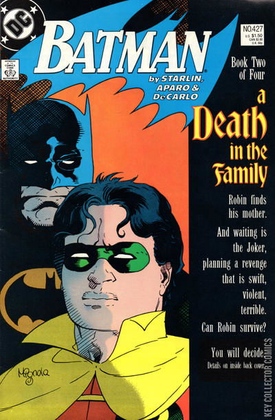 - After the Joker badly beats Jason Todd with a crowbar, an explosion finishes him off but the fate of Robin was not decided until phone lines were opened to fans after this issue went on sale to determine the fate of Jason Todd