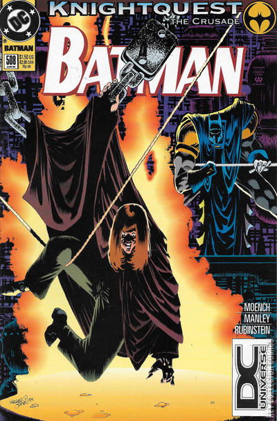 KNIGHTQUEST: THE CRUSADE, PART 23 - MORTAL REMAINS Continued from Detective Comics #674 -- Outgunned Jean-Paul Valley steps way over the line in his role as Batman by committing an act that cannot be undone, and which costs the life of an innocent. Continues in Batman: Shadow of the Bat #28 -- Commissioner Gordon: The Long Dark Knight