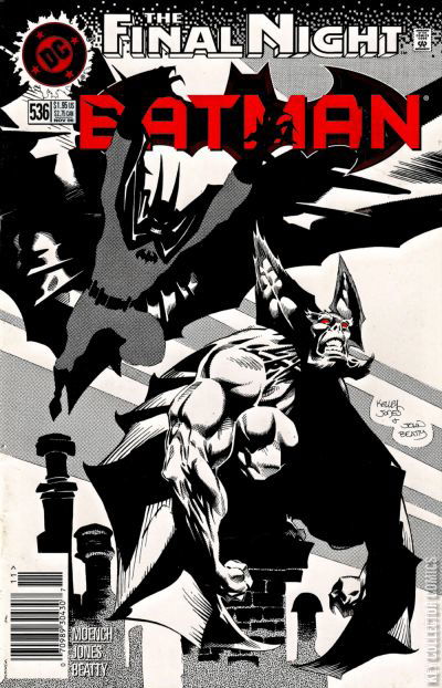 DARKEST NIGHT OF MAN-BAT PART 1 - PREDATION Gotham City is in complete darkness and a bat-like creature has started to terrorize the city. An eyewitness goes to the police department and tells Sgt. Bullock about the creature. Bullock lets Batman know about the sightings of the bat creature. Batman reckons that some of those sightings might have been himself but just to make sure about it Batman goes to Kirk Langstrom's house. When he enters, he finds Francine Langstrom lying unconscious on the floor and the place a mess, indicating a previous struggle. Batman knows then that Man-Bat is prowling the city. Batman tells Bullock to call an ambulance for Francine Langstrom and he starts to create the antidote to revert Kirk's mutation. Meanwhile, Man-Bat attacks some people at the harbor just to feed from their fish. Every second that passes, Man-Bat starts to lose any humanity left inside him and is acting more feral and instinctive. Batman's theory is that because of the prolonged night time, the instincts of a nocturnal animal in Langstrom becomes stronger and controls the man. Batman patrols the streets to find him and in the meantime he stops a robbery. Just when he is about to knock out the last of the thieves, Man-Bat appears and takes the thug as his prey. Batman ties up a rope on the man's ankle and prevents him becoming Man-Bat's dinner. Man-Bat is furious at Batman and the monster decides to leave Gotham once and for all in order to escape from Batman and to hunt any prey he wants. Batman saves the thief and takes him to the police. Later, Commissioner Gordon calls Batman and told him that Francine Langstrom is awake and asking for her husband. Batman decides to follow Man-Bat to the north, where the beast has departed and help the doctor trapped in the monster's body.
