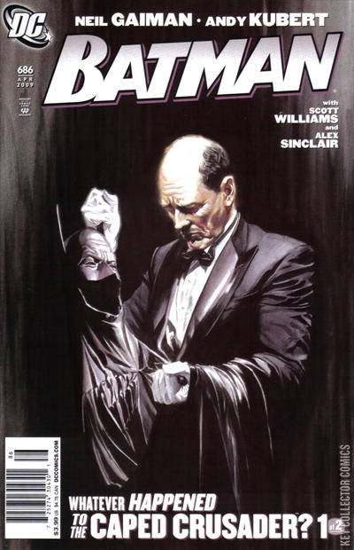 WHATEVER HAPPENED TO THE CAPED CRUSADER? PART 1 - THE BEGINNING OF THE END Batman's conscience overlooks Gotham City and a voice talks and takes his view towards Crime Alley, where something important is taking place. At that moment, the Catmobile enters the street and Selina Kyle stops the vehicle in front of a bar. When she steps down of the car, a youngster offers to keep an eye on her car for a few cents, but she replies that her car is already protected and as the young man turns around, he sees the car filled with astray cats. Selina walks into the bar, which is apparently empty except for the bar tender, who is in fact Joe Chill. Joe tells Selina to walk to the back door to reach her destination and as she starts walking there, Selina remembers that Chill was supposed to be dead, but he just tells her that he was there when it all started and that he needs to be there in the end. As Selina enters the room in the back, Alfred welcomes her and takes her to the main room, where they are waking Batman, who had just recently died. Batman's conscience keeps watching as more people start arriving to his own funeral. Two-Face arrives and he allows the youngster to keep an eye on his vehicle. Commissioner Gordon and Barbara arrive as well and Alfred places them on the seats in the front. When Joker arrives in his Jokermobile, the youngster doesn't really wants to take care of that car, but Joker insists. The young man is left in shock as he believes he will most likely be killed by the Joker whether he takes care of the car or not. More people keep arriving at the funeral, both Batman's greatest allies as well as his greatest foes. Harvey Bullock talks to Montoya and he explains her that he believes that with Batman dead, Gotham City is already dead as well. Meanwhile, villains like Harley Quinn, Joker, Mad Hatter and Penguin are courteously talking about their common enemy's demise. When enough guests have arrived, Dick Grayson talks to the people in the room and asks if there's anyone who would like to say anything about the departed. Selina Kyle walks to the front and starts telling the story of how they met and her unique relation with Batman. Selina was once a thief disguised as a cat, when Batman confronted and stopped her. Their encounters would become much more regular and each time, there would be an increasing romantic tension between both of them. One night, after Batman captured her for the umpteenth time, Batman tried to talk her into going straight and be a normal person, but Selina refused, as she believed that while doing so, he wouldn't care anymore about her. Selina then tired to talk Batman into leaving crime fighting and become a normal person, but Batman couldn't even think about it. The conversation went like that, talking about possible scenarios where Batman and Selina would work together or they would both live normal lives. In the end, Selina told Batman that she would start taking down criminals, hoping to clean the city until there wasn't need for a Batman. Selina did her best and took down organized crime factions as well as known villains like Penguin. When she was taking care of a street pimp, Batman appeared and told her to stop her crusade, as she is turning into a worse criminal herself. Selina finally understands and retires from her vigilante activities, opening a pet store in which she takes care of cats. For years, she kept doing her honest job, listening to stories about the dark knight, but never actually talking to him again. Until one night, Batman appeared in front of her store just as she was closing it. He was badly injured and after losing a lot of blood, he was looking for help. Selina took him inside the store, but hours later, Batman woke up and realized that instead of giving him medical attention, Selina had tied him to a sofa, preventing him from escaping. Selina then talks how he asked her to take him to a hospital and how she refused to do it, killing Batman. As Selina walks away from the coffin, Alfred steps forward and starts telling his own version of Batman's life and adventures. He starts telling the attendees about his past as an actor and how he was called to Gotham City once his father was diagnosed with a terminal illness. By the time Alfred arrived in Gotham, his father had died and following his will, Alfred started working as the butler for the Wayne family. Alfred witnessed the sheer happiness on the Wayne household until the night when Thomas and Martha Wayne were killed by Joe Chill, leaving young Bruce as an orphan. The shock of this events never left Bruce's mind and he began training his mind and body to the point of perfection. After years of training and preparation, Bruce, now and adult, started going to the streets as a masked vigilante to stop crime, but on his first missions, he always ended up badly injured. A short time later, Bruce started dressing as a bat and he even designed his base of operations underneath Wayne Manor. His crime fighting skills improved as well as his general mood. However, his mission started to consume him and soon, Batman became a force too powerful for the common crime of the city. Alfred witnessed how Bruce's purpose in life started to fade away and he decided to give the man some joy back into his life. Alfred met with one of his former actor colleagues in Gotham and asked him to play the role of a criminal mastermind with a compulsion for riddles. After a few nights of planning, they came up with the Riddler's identity and a perfect criminal plot that would keep Batman distracted from the futility of his existence. After their successful feat, Alfred called his other friends and asked the same of them, giving them all a new criminal identity. However, Alfred noticed that Batman could defeat them all and that this hero needed a nemesis. Alfred took it upon himself to create the perfect villain for Batman. Using some special make-up, a purple suit and a green wig, Alfred turned into 