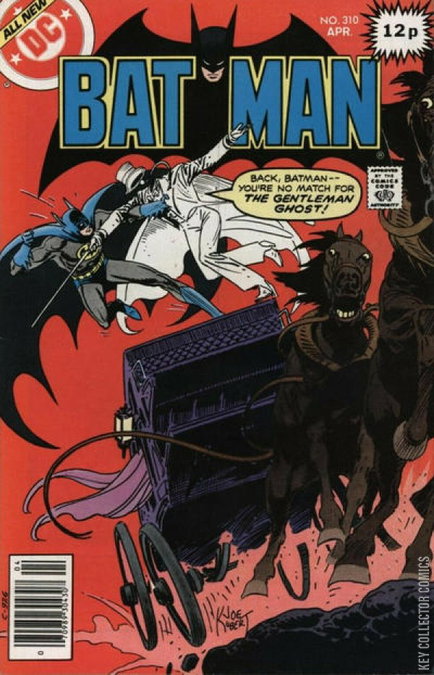 THE GHOST WHO HAUNTED BATMAN Batman encounters the Gentleman Ghost and his gang robbing the Riverside Museum, but cannot stop them from escaping with two solid gold lanterns which once hung in front of Wayne Manor. Batman returns to the Wayne Foundation penthouse and finds Alfred mysteriously gone. The butler fails to turn up during the next day and cannot be found, so Batman assumes the disguise of another butler and checks out Ye Pipe and Hearth, an English-style pub frequented by Alfred. One of its denizens recalls seeing Alfred leave with a "toff". When Batman returns to the penthouse, he finds Alfred, the Ghost, and the gang stealing an antique chair. Alfred refers to the Ghost as his "master" and clubs Batman unconscious with a lamp. Awakening some time later, Batman suddenly realizes the reason for the Ghost's bizarre thefts. The Ghost is currently living in Wayne Manor, and is restoring its old effects, having heard Alfred bragging in the pub of its atmosphere and deserted condition. Alfred himself is under the Ghost's mental domination. Batman confronts the Ghost in the manor, and the villain tosses Alfred a flintlock pistol and, as a test, tells him to shoot Batman. The butler is unable to do so, and is freed from the Ghost's spell. Batman chases the Ghost outside onto a horse-and-carriage, which is sent careening off a cliff. Batman jumps before the coach falls. Investigating the wreck, he finds only the Ghost's fallen hat in the debris, and hears ghostly laughter mocking him from afar.