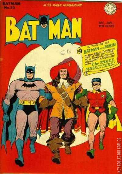 RACKETY-RAX RACKET! The Joker captures Batman with help from his henchmen and they take the vigilante to their secret hideout. Joker then contacts Robin and forces him to perform embarrassing but apparently harmless feats in order to keep Batman alive. However, Joker is using Robin for his criminal activities and when the Boy Wonder realizes the truth, he prepares a trap for the Joker. Meanwhile, Batman struggles to find a way to escape and after a long time, he breaks free and follows the Joker to a toy store. The Joker's plan was to steal the jewel store above the toy store, but Robin's preparation for the crime and Batman's timely arrival, foil the madman's plan. DICK GRAYSON, BOY WONDER Dick Grayson was a member of the Flying Graysons, the trapeze artists who worked at Haly's Circus until they were killed by Boss Zucco. With John and Mary Grayson death, Dick was taken in by Batman, who taught Dick some advanced martial arts techniques and gave him the secret identity of Robin. Batman and Robin captured Boss Zucco and his gang, giving Robin the chance of getting revenge against the killer of his parents. Bruce Wayne had no intention of allowing Dick to continue his crime-fighting career, but Grayson wants to prove his worth and so begins an intensive training in which Bruce teaches Dick about investigation, criminology and science. When the time came, Batman allows Robin to go out a second time as Robin and this time, Batman introduces him to Commissioner Gordon as his assistant. After learning all the details from Gordon, Batman and Robin track down the criminals, but during the confrontation, Dick is captured and Batman allows the criminals to capture him as well. Robin is then taken away, but he manages to escape from the crooks' vehicle. Robin warns Commissioner Gordon about Batman, but by the time the police arrive at the scene, the thugs had moved elsewhere along with Batman. Robin remembers Bruce's training and he decides to look up for clues and continue his investigation at the Batcave. After this, Robin deduces the criminals' location, but he decides to go alone. Robin finds the place and using the smoke from the fireplace, he breaks inside unnoticed and sets Batman free. Together, Batman and Robin defeat the thugs and when they return home, Dick gives up the role of Robin for all the trouble he caused. However, Bruce is more than satisfied with Dick's performance and he allows the boy to become his sidekick permanently. IN THE SOUP! Alfred is tired of being laughed at for his various accidental victories over crime and this time he decides to do a proper investigation. Following the clues about a recent crime, Alfred finds the criminals and he takes the police to the scene, where they arrest the thugs with Alfred's help. However, Bruce and Dick are still skeptical about Alfred's recent achievement. ALL FOR ONE, ONE FOR ALL Professor Carter Nichols uses his hypnotic technique to send the minds of Bruce Wayne and Dick Grayson back in time to Europe of the 17th Century. Here, Bruce and Dick come across the famous Three Musketeers and their future friend D'Artagnan. Batman and Robin relive the story already told by Dumas, but with their help, they change the tragic ending to a happy one. After their adventure is over, Professor Nichols brings their minds back to the present.