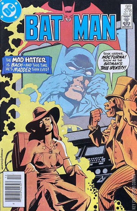ONE HAT MADDER! After delivering his warning to Mayor Hill, Batman returns to the Batcave, where he considers his next move regarding the various unsolved issues at the time being. In the meantime, the Mad Hatter, who escaped during his previous encounter with Batman, prepares his next scheme and decides to use his mind controlling hats in order to steal from known criminals. Since the latest crime perpetrated in Gotham City was by Nightmares, Inc., and the only available connection to the criminals is the woman known as Nocturna, Hatter prepares to steal every piece of information from her memory. The next day at the Gotham Courthouse, a judge decides to end the adoption process of Jason Todd by giving him to Natalia Knight, much to Bruce Wayne's disappointment. After a last farewell, Bruce returns to Wayne Manor, where he is crowded by his friends' good wishes until night comes and he gets tired of their pity, leaving them to go to the Batcave. After a quick change of outfit, Batman considers his options and decides to continue his search of the Night-Slayer, althoug inadvertently, he has chosen this for another reason. At that moment, Nocturna gets a strange present at her hotel room and upon opening it, she finds a fancy hat from a "secret admirer". Believing that this is a sign of good faith from Bruce Wayne, she puts the hat and outside of her room, Mad Hatter activates the portable computer in order to mind-control Nocturna and steal all her memories. Altough Hatter's plan consist of learning the secret location of Nightmares, Inc.'s loot, he is unaware that Nocturna also knows the real identities of Batman and Robin. At that same moment, Jason decides to pay a visit to his new mother, but he chooses to go as Robin. The Batman's search has led him back to Nocturna's hotel, just as he wanted, subconsciously. When he goes to her room, Batman finds the Mad Hatter and attempts to stop him, but the resourceful Hatter uses Nocturna and mind-controls her to attack Batman, who can't bring himself to hurt her and instead chooses to avoid her attacks. With Batman busy against Nocturna, Mad Hatter leaves the room just as Robin gets there. Batman commands Robin to track down the Hatter and although the Mad Hatter manages to escape, the kid retrieves the Hatter's computer, which holds all of Nocturna's memories, including their secret identities. When Robin gets the computer back to Nocturna's room, Batman tells him to turn it off in order to end Hatter's control over Nocturna. When she is no longer under the influence of the Mad Hatter's technology, Nocturna comes to her senses and apologizes to Batman for her behaviour, but Batman remains cold to her pleads, leaving the place with Robin by his side.