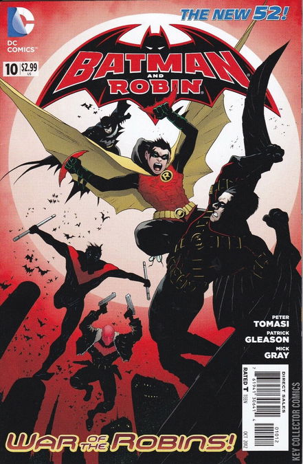 TERMINUS, PART ONE : SCAR OF THE BAT A villain called Terminus gathers together a collection of thugs who have suffered at the hands of the Batman. Each one has been physically or emotionally scarred by their encounters with him. For weeks, these assembled have been unwittingly running errands for Terminus, and the time has now come to complete his task, and make the Batman pay. At Wayne Manor Bruce Wayne has gathered three of his adoptive and biological sons together for a family portrait, including Alfred Pennyworth. Unfortunately for the artist, Mr. Benioff, Bruce keeps changing the pose, so that he has to start over again. Additional frustrations come from the fact that Tim Drake and Damian can't seem to stop bickering about who is the better Robin. When things become too heated, Bruce calls a halt to the portrait sitting, and explains that all of them have had strengths and weaknesses as Robin, and that should unite them, not act as a wedge. Even after hearing this, the boys storm off in opposite directions, leaving Bruce and Dick alone. Bruce explains that the portrait was meant as a way of spending time with his family; to memorialize the time he has with them. Elsewhere, Terminus uses a machine to inject toxins into his body, but the results are the breakdown of his body. He uses a device to replace his protoplasm and bone-marrow, as a means of maintaining his body-integrity. It is quite painful. Each of them called to the same place, Red Robin, Nightwing, and Red Hood wonder why they've all been gathered there. They soon discover that they were called by Damian, who is serving notice that one day, he will defeat each of them at the thing they feel they are unbeatable at. After he defeats them, he will take a personal item of theirs as a memento. This will all be in the service of proving who is the best Robin. Regardless of Nightwing's attempt to talk sense into the boy, he simply announces that "forewarned is forearmed," and leaves the three former Robins alone. In the Batcave, Bruce sharpens his Batarangs while Alfred wonders why he failed to tell Tim or Dick about what Damian did to Morgan Ducard. Bruce had decided to keep the killing between he and Damian, so they could deal with it as father and son. Alfred comments that Bruce is becoming quite the over-protective parent, as Bruce rushes off to answer the Bat-Signal. Later, Tim returns to the cave, hoping to tell Bruce about the encounter with Damian. Instead of Bruce, he finds Damian, who claims that Tim's reaction was predictable. Tim is expecting a physical altercation as part of Damian's plan to best him, but it turns out the boy's plan is more of a game of wits. He shows Tim footage from his experience of The Culling, when he had watched Artemis bleed to death, and had exacted brutal vengeance against her killer. Damian pushes Tim psychologically to the point that he admits that he thought about killing Artemis' murderer; that he had nearly crossed the line. Damian admits that his point was to show that despite what Tim may think, he is not better than his successor. It is time for Tim to accept who and what Damian is: a Wayne, and a Robin. Elsewhere, Terminus emerges from his machine reinvigorated - for now at least. Now, he needs to send the Batman a message: the man and his city are branded for death.