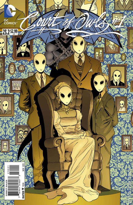 EXQUISITE DREAD For years, the Talons have lived to see the expression of dread pass over the faces of their victims as they realized that the legends they had disbelieved for years - dismissed as a childish nursery rhyme - were true, and that they were going to die at the command of the Court of Owls. Now, Gotham City is in shambles, as the Crime Syndicate has announced that the Justice League is dead, and Gotham's protector - the Batman - with them. Even so, the Court of Owls believes that they will persevere; that their city will survive, as will their way of life. With their existence threatened, they will dig into the foundations of their arcane history, and use it to adapt. In 1914, R.H. Orchard showed the mayor of Gotham City his treasury, hidden within the core of the Orchard Hotel. The mayor was surprised at the opulence, not to mention the palpable disdain of the man who had invited him there. Orchard explained that the mayor's meeting the following day with five national union heads would be unacceptable to his organization. The city, he explained, survived on a balance of power that was created over centuries, and cannot be allowed to be challenged by outsiders. When the mayor demanded just who Orchard thought he was to tell him what to do, he was disturbed to find himself surrounded by men in masks echoing his "who?" back at him, over and over. The next day, the mayor threw the union leaders out of Gotham in outrage, and returned, groveling to the Court, only to be dropped into their labyrinth to be broken and murdered by a Talon. In 1871, a young photographer had discovered the hideout of the Court of Owls at Harbor House, and discovered that their activities were actually mundane and boring. His wife, though, still believed they were dangerous, and warned him against speaking too loudly of it. He was preparing to take the photo he had got of the Court in action to the Philadelphia Press at the Metropolitan Station, and she begged him not to go. As he kissed her goodbye, and prepared to board the train, a noose slipped around his neck from the rafters, and hung him by the neck 'til he was dead. As she screamed for him, a man placed a drugged cloth over her mouth, and by the next day, their deaths were headlines in the Gotham Gazette. Now, a prominent member of the Court leads his daughter down into a safe place - where the Court began. As they enter the tunnels beneath the city, the girl admits that she is scared, and her father reveals that strength comes through fear, recounting the tale of the Gotham Butcher. In 1862, a well-dressed man strode through the Narrows, angrily. Stepping over the threshold of a particular house, he brushed past the mutilated corpses strewn about with disgust. Confronting Felix Harmon, he warned that the papers had dubbed him the Gotham Butcher - a problem, given that none of the Talons are even supposed to be known about, let alone kill without being told to. Tiring of listening to his guest's berating, Harmon reached out, and crushed his skull in one massive fist. The Court had had to spend a decade in hiding after Harmon's indiscretions, but when they returned, they were stronger than ever. The Court of Owls always wins, because it is a part of Gotham City as much as its rivers and caves. The city's foundation would have to be torn up to even grasp at the Court's roots. Curious, the girl wonders how their history can save them from a crazed mob of rioters. Her father explains that while they could use their control of established institutions to quell threats in the past, this situation is more dire, and so they have gone below to the home of the one who started it all. From the shadows, a woman shouts for them to stop, warning that they cannot bring back the first. She had murdered more of their brothers earlier in service of preventing the first's awakening, and she would not hesitate now. To her surprise, though, the man's daughter leaps onto her back, and tears into her flesh with knives. Proud, her father leads her through the great wooden doors to the chamber of the First Talon, eagerly anticipating the look on his victim's faces when they see the first and most terrible weapon that the Court has ever used.