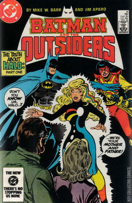 THE TRUTH ABOUT HALO PART 1 - ... GOODBYE... After long investigations about Halo's past and background, Bruce Wayne asks private eye Jason Bard to track down Halo's home town and parents in Arlington, Missouri. Bruce provided him with the only the name "Violet" as a clue and Bard eventually locates Violet Harper's family. When the Outsiders learn of this, they start the preparations for Halo's return home, while Metamorpho, wanting to see his love, Sapphire Stagg has Dr. Jace create a device to counteract his weakness: The Orb of Ra. In Halo's hometown, the Outsiders leave their friend with her parents and say goodbye to the youngest member of their team, something specially hard on Halo's boyfriend, Geo-Force and her roommate, Katana. Meanwhile, Metamorpho gets in touch with Sapphire, but her father Simon has foreseen this event and attacks Metamorpho with an army of men, each one armed with an Orb or Ra, and Metamorpho is effectively killed. After the Outsiders have returned to their headquarters after dropping Halo off at home, they are startled when they find Dr. Jace and Sapphire waiting with a dead Metamorpho.