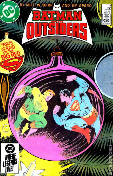 WHO'S AFRAID OF THE BIG BAD S? It's Christmas time again and Halo has returned to Gotham City finding her life back home too horrible to deal with anymore. That night she and Geo-Force reconcile that they don't love each other and that they should just be friends. Just then, Geo gets a call from his classmate Denise who has just swallowed a bunch of pills. Calling an ambulance, Geo arrives in costume and learns that she attempted suicide because her professor tried to get advantage of her in order to give her a scholarship. Angered, Geo flies after the professor to kill him for what he's done. Halo, wanting to stop Geo before he goes too far, seeks the aid of Batman, who knows that Geo-Force is a force too big for the Outsiders to deal and he summons his old friend, Superman. The Man of Steel fights off Geo and convinces him that killing is not the way. When Superman and Geo-Force confronts the professor with what Geo-Force knows, the professor denies everything. However, Batman arrives to inform him that he's dug up seven other instances where the professor has sexually battered other students, and has him turned over to police. Afterwards, Geo visits Denise in the hospital and everybody spends a nice Christmas together.