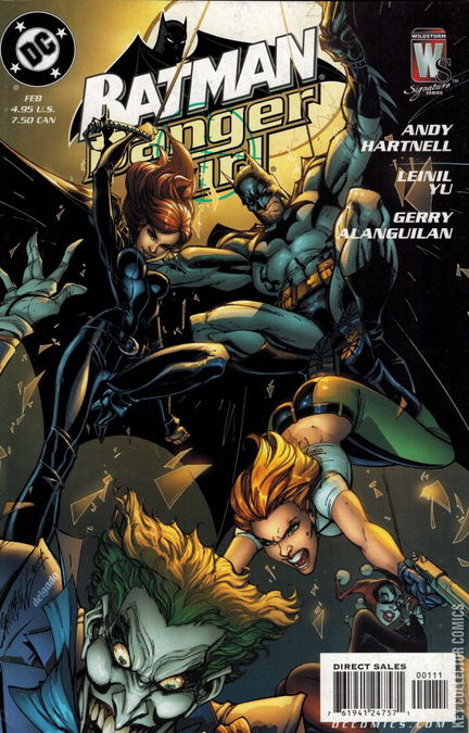 Danger comes to Gotham City in this action-packed 48-page Special featuring art by Leinil Yu & Gerry Alanguilan (SUPERMAN: BIRTHRIGHT)! Danger Girl mentor Deuce dispatches Abbey Chase, Sydney Savage, Johnny Barracuda and Valerie on an assignment in Gotham City, home base of Batman! Meanwhile, Donavin Conrad, old enemy of Abbey, is also in the big G, and forms an unlikely alliance with one of Batman's greatest foes! Adventure, mirth and mayhem ensue as the Dark Knight joins forces with the hottest spy chicks in comics!Danger Girl enter Gotham City on a tip that Donavin Conrad is doing a deal to sell a mind control gun. Batman is aware of this and of the Danger Girl team's appearance, unhappy at them moving in on his turf.Conrad's client is none other than the Joker, who has the gun but not the activation code currently in Conrad's possession. Conrad offers the code in exchange for revenge against the Danger Girl team, but Joke twistedly cuts off Donavin's hand and blackmails him into handing over the code. Donavin tells Joker that the code is locked away in a bank so Harley Quinn and Conrad leave to go pick it up.Meanwhile, Abbey and Sydney have gone to rent a car for their mission. Abbey choose the most expensive and fast car she finds, which the shop tells her is sold. Bruce Wayne appears and hooks the girl up with the car and an invitation to the Gotham Historical Society ball.Later on, Conrad and Harley are ambushed by Batman, but escape and manage to get to the bank and withdraw the mind control gun activation code. Abbey and Sydney find the Joker's hideout and confront him, but he tricks them into believing a bomb is about to go off and they can't get to him in time. The bomb was in fact a box of exploding confetti.Abbey, using Silicon Valerie's techno skills, activates the Bat-Signal and alerts Batman to their presence. Abbey offers to team up with Batman, who naturally refuses, and a fight breaks out between them and Sydney. Batgirl makes an appearance and...