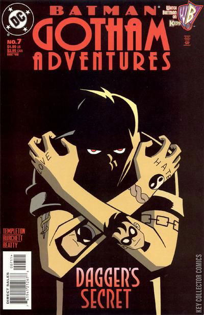 Batman and Robin cross paths with Dagger Dixon (last seen in THE BATMAN AND ROBIN ADVENTURES #14), a hood who knew Tim Drake's father and recognizes the face behind Robin's mask. Is this the end of Tim's career as Robin? Is it the end of Bruce Wayne's career as Batman? And how does the Penguin fit into things?
