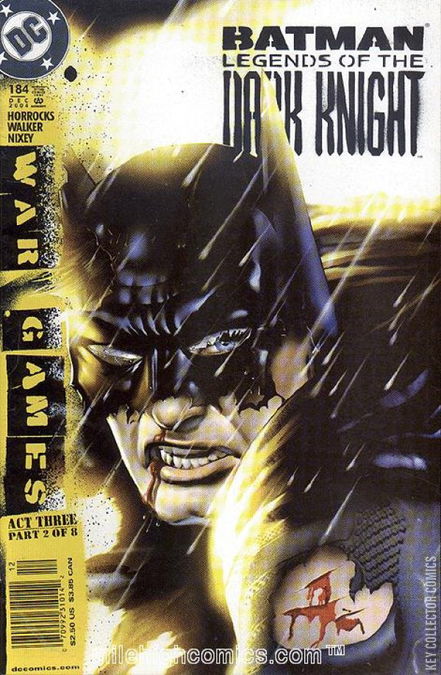 WAR GAMES ACT 3 PART 2 - THE ROAD TO HELL The criminals gathered at Robinson Park continue to spread out of the place into the city despite the GCPD efforts. Batman thinks about his perfect plan to capture all the criminals in Gotham and how it went wrong. Batman keeps fighting the waves of criminals that decided to take a chance on him while the impostor posing as Orpheus keeps enticing them to attack Batman. Meanwhile, Nightwing and Batgirl are on their way towards the theater where Batman is located and they race each other, getting there almost at the same time. Just then, Robin and Onyx arrive and join the battle. At that moment, Tarantula leads the gang "Las Arañas" out of the park, but they encounter several police officers and have to make their way through by attacking them. The reports about Tarantula's escape reach Commissioner Akins and the other members of the GCPD, who stand outside the park, unable to believe that they had the chance to apprehend all the criminals in Gotham, but the chance was blown because of Batman. Akins tells his officers that Batman is no longer on their side. At the park, Batman tries to reach the impostor and is attacked by Killer Croc. Robin gets rid of Croc allowing Batman to get to the main stage and attack the impostor posing as Orpheus. Batman hits the man twice in the face and the disguise falls apart, revealing Black Mask, who Batman believed to be dead. Black Mask explains that the fall from a tall building didn't kill him and Batman prepares to take him down when he is suddenly attacked by Scarecrow. Both Batman and Black Mask are surprised at Crane's intervention and Scarecrow explains that he was delighted by the sight of hundreds of criminals cowering in fear, all due to Black Mask's plan. Black Mask thanks Scarecrow and uses a smoke grenade to escape before Batman can reach him. Black Mask escapes and the sky turns dark as it begins to rain. Batman stands in the middle of the battlefield while the rest of his team has already taken care of the criminals and are staring at their boss, who is silent under the pouring rain. Batman turns around and explains that this whole situation was a mistake, a plan that was intended to be an strategy game but was never meant to be set in motion. However, the plan was set in motion and the game has turned into a war that has left nothing but death and destruction. Batman addresses to his team and tells them that the games are over and that from now on, they are at war.