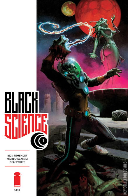 Grant McKay, former member of The Anarchistic Order of Scientists, has finally done the impossible: he has deciphered Black Science and punched through the barriers of reality. But what lay beyond the veil was not epiphany but chaos. Now Grant and his team are lost, living ghosts shipwrecked on an infinite ocean of alien worlds, barreling through the long-forgotten, ancient, and unimaginable dark realms. The only way is forward. The only question is how far are they willing to go, and how much can they endure, to get home again? Join writer RICK REMENDER and the superstar art team of MATTEO SCALERA & DEAN WHITE for this face-melting science fiction epic spanning the lifetimes of a cast of dimensional castaways lead by the man that caused it all.