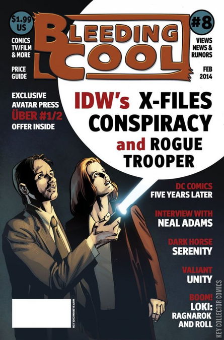 Only $1.99 for over 100 pages of content you can't get online! Kieron Gillen's smash hit, Uber unleashes an exclusive #1/2 comic that you can only get right here! Uber #1/2 Sieglinde delves deep into her origin and each copy of Bleeding Cool Magazine #8 has a unique redemption code so you can read it. This code gets you one FREE digital copy of this issue, but also allows you to order a limited print copy, certain to be a must-have collectible for Uber fans. Also in this issue and on the cover, we celebrate Darwyn Cooke's new Richard Stark's Parker: Slayground series! The Parker comics have been multi-award winning masterpieces and we take an in-depth look at Cooke's work on them. We also uncover the secret new X-Files project coming out including a price guide focus on the classic series! RICH JOHNSTON tells us the winners and losers of 2013 and looks ahead to the biggest comics on the horizon! BRENDON CONNELY takes us behind the scenes of the biggest upcoming movies with exclusive photos and scoops on Hollywood's super events. Follow along with our COLLECTIONS INTO CASH and PRICE GUIDE features to keep track of the latest trends and ways to profit from your comics. Delivering over 100 pages per issue on a bi-monthly release schedule, each issue is full of articles that are NOT AVAILABLE ON THE WEB!