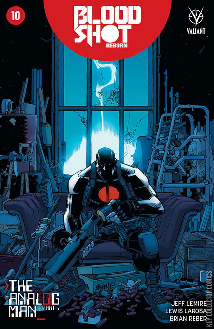 The Analogy Man - Part 1 ALL-NEW ARC! ALL-NEW JUMPING-ON POINT! WHO OR WHAT IS…“THE ANALOG MAN”? Many years from now, Los Angeles has become a post-apocalyptic wasteland and the once unstoppable killing machine known as BLOODSHOT has become THE ANALOG MAN. Hopelessly outdated, Bloodshot’s taken on a new role as the protector of a small town, eking out a subsistence existence with the great love of his life – Magic – and protecting a group of stragglers who’ve weathered the storm. But when a gang of marauders arrives, the settlement’s survival is threatened, and Bloodshot is forced to bring justice to the distorted and disjointed badlands of the Valiant Universe! Blockbuster artist Lewis LaRosa joins New York Times best-selling writer Jeff Lemire for a gasoline-soaked storyline two years in the making right here for “THE ANALOG MAN”!