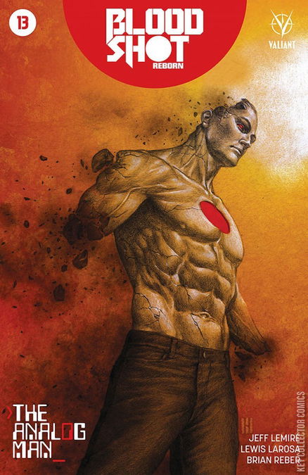 The Analog Man - Part 4 (conclusion) “THE ANALOG MAN” slams into a wreckage-strewn showdown that will shatter Bloodshot’s world…or what’s left of it… Los Angeles. Thirty years later. The new mystery at the center of America’s post-apocalyptic future stands revealed when Bloodshot and Ninjak finally discover the identity of the Man in the White Tower. Who is he? Why does he ruthlessly rule over Los Angeles? And what is his connection to the silent army of X-O Manowar sentries that police this world, the strange Goo-tech that pervades it…and to even Bloodshot himself? New York Times best-selling writer Jeff Lemire (Descender) and artist extraordinaire Lewis LaRosa (The Punisher) will shock you with the final fire-forged chapter of the eye-popping epic that must be seen to be believed as “THE ANALOG MAN” comes roaring to a close!