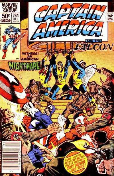 "The American Dreamers!" In a remote hotel, four people are hooked into strange machinery. Meanwhile, Captain America finds himself in various confusing scenarios, including working for President John F Kennedy, Bucky leading the Avengers, Sam Wilson as a shoe-shiner, himself as a child at a carnival, and Nazis parading around captive Jews, blacks, and mutants. Cap attacks the Nazis and finds a message calling him to the Waldheim hotel. Meanwhile, Morgan MacNeil Hardy adjusts his machine, a Telepathy Augmenter, not understanding why the four people hooked into it keep changing reality from what he wants. Cap travels to the hotel, battling as a child through Klu Klux Klan members to find Hardy has hooked himself into the machine to stabilize reality. Cap challenges Hardy, asking whose morals are correct: the racist, the Nazi supporter or the child who wants to play? In response, Hardy tries to erase Cap from reality. The machine overloads and kills Hardy along with two of the subjects hooked into it.