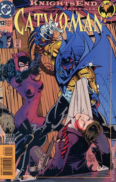 KNIGHTSEND PART 6 - FIRE IN THE SKY Continued from Robin #8 -- Part 5: Death's Door Catwoman nears the cybernetic enabler which will allow Brendan O'Boyle to walk again, but not for long. She is captured by Selkirk, escaping her bonds just as Batman arrives in Selkirk's building, intent on killing him. This is prevented by the arrival of the real Batman, along with Nightwing and Robin. Continues in Batman #510 -- Part 7: Return of the Bat
