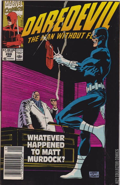 Home / Marvel / Daredevil / Daredevil #288 Marvel Released January 1991 Daredevil #288 Add to Collection Want It Synopsis No synopsis available. Issue 290 of 413 Add to Collection Buy it on eBay Buy on eBay Low $1 Mid $2 High $3 Synopsis No synopsis available. Details Series Daredevil Cover Date January 1991 Pages N/A UPC N/A Cover Price $1.00 Final Order Cutoff N/A Creators No creators listed. Price Guide Log in or subscribe to access detailed graded price information and market insights. Log In Subscribe