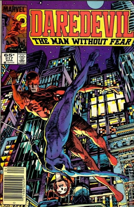 First 65-cent cover price. Cover art by Barry Windsor-Smith. The Sight Stealer starring Daredevil, the Black Widow, Foggy Nelson, Becky Blake, Glorianna O'Breen, The Gael, and The Cossack, script by Denny O'Neil, art by David Mazzucchelli; The Cossack has the power to cause blindness and only New York's blind super hero can stop him and thwart his schemes