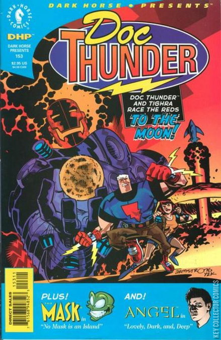 Angel: Cordelia lands the starring role in a Blair Witch rip-off about three filmmakers searching for the legendary "Helm of Harxis." But what she and Angel don't know is that the film is a sham and the Helm is the real thing! Doc Thunder: Doc and his plucky female sidekick Tighra race commie villains to the moon to save the world from The Crimson Cranium! The Mask! Where did it come from? Where has it been? Discover the answers... if you dare! Now in flip-book format!