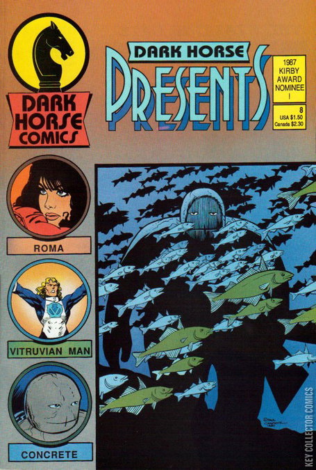 Three great stories! Concrete by Paul Chadwick, The Vitruvian Man by Steve Mattsson, Marc Badger, and Art Nichols. Fossil by Tony Salmons.ChaptersConcrete: "Water God" - Concrete tries out a swimming rig and is pestered by some over-enthusiastic kids.Gene Shock: The Vitruvian Man: "Growth" - Gene recovers miraculously fast from the bullet wound he received. He feigns illness to avoid raising suspicion. When he sneaks out, his sister finds pictures of a superhero costume that he's been drawing. When he sneaks back in, she discovers more bullet wounds on his body...Roma: Chapter Three - Roma meets, and very quickly becomes close to Alex Trace - Salinger Mass' assistant. Miss Bron gives Roma a little insight into why she has been raised as a human despite her alien nature.