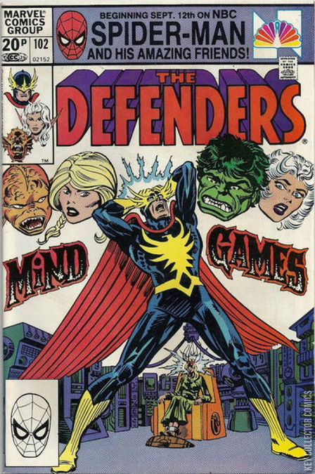 Home / Marvel / Defenders / Defenders #102 Marvel Released December 1981 Defenders #102 Add to Collection Want It Synopsis No synopsis available. Issue 102 of 152 Add to Collection Buy it on eBay Buy on eBay Low $1 Mid $2 High $3 Synopsis No synopsis available. Details Series Defenders Cover Date December 1981 Pages 32 UPC N/A Cover Price $0.20 Final Order Cutoff N/A Creators No creators listed. Price Guide Log in or subscribe to access detailed graded price information and market insights. Log In Subscribe