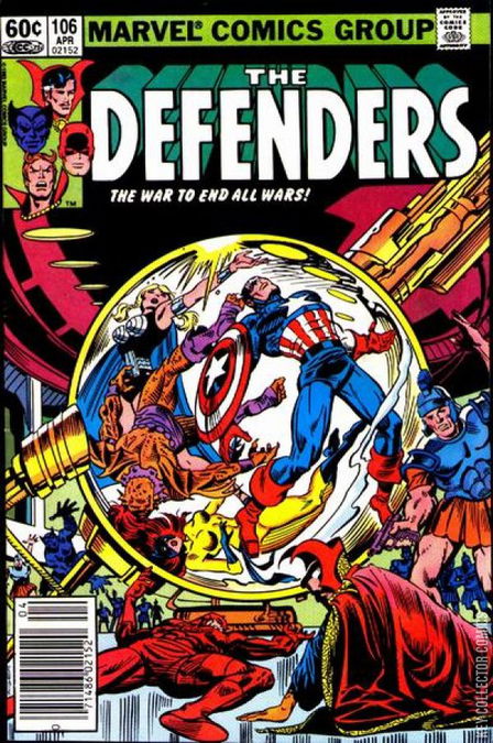 Home / Marvel / Defenders / Defenders #106 Marvel Released April 1982 Defenders #106 Add to Collection Want It Synopsis "The War to End All Wars!" Issue 106 of 152 Add to Collection Buy it on eBay Buy on eBay Low $1 Mid $2 High $3 Synopsis "The War to End All Wars!" Details Series Defenders Cover Date April 1982 Pages 32 UPC 0714860215204 Cover Price $0.60 Final Order Cutoff N/A Creators No creators listed. Price Guide Log in or subscribe to access detailed graded price information and market insights. Log In Subscribe