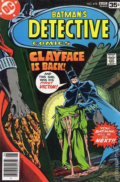 THE COMING OF... CLAYFACE III! Batman pounces upon two thieves robbing the Gotham Aquarium. Frustration over his recent break-up with Silver St. Cloud has driven the Dark Knight to new fits of anger and he unloads on the petty crooks until the arrival of the Gotham City Police Department. Meanwhile, a mysterious hooded figure breaks into the Gotham branch of S.T.A.R. Labs and tries to steal an experimental device. The night watchman, Henry Matlock, tries to stop the thief, but the cowled criminal turns on him, using the corrosive touch from his fingers to turn the guard into a mass of protoplasm. Batman returns home to the Wayne Foundation and shares his frustration with Alfred. He quickly realizes how his actions have been affecting his work and he is having great difficulty balancing his private life with his career as Batman. Commissioner Gordon later contacts him and brings Batman to the scene of the crime at S.T.A.R. Labs. They find the words "Forgive me" written in clay on the wall behind Matlock's corpse. Meanwhile at the Father Knickenbocker Wax Museum, the hooded criminal who calls himself the new Clayface has dinner with a manikin. He tells the motionless dinner guest about his own tragic origins and his forays into a scientific process that led him to seek out the second Clayface, Matt Hagen, in the hopes of finding a fix for his anatomical deformity. The process failed however and now Preston Payne is a monstrous man of clay who must infect others with his corrosive touch to stave the waves of fever and pain that overwhelm him. His only hope is to find another component for a device from S.T.A.R. Labs. Clayface goes out to S.T.A.R.'s Starhaven facility outside of town and breaks in. Batman receives a call about the break-in and goes to investigate. He finds Clayface trying to steal another device similar to the one from the first S.T.A.R. Labs break-in. Batman pounces on him, but Clayface shrugs him off. He then removes his glove and prepares to kill Batman with his corrosive touch.