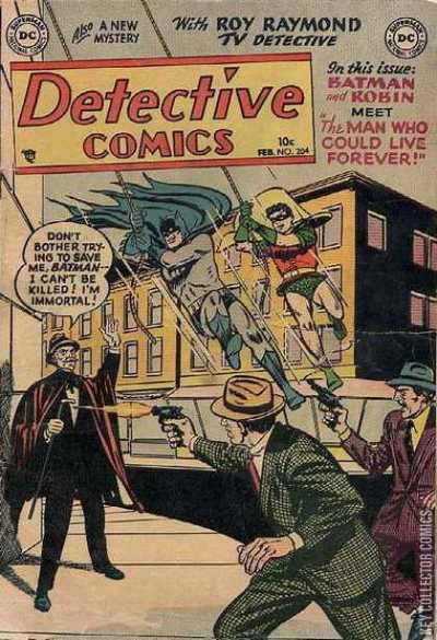 THE MAN WHO COULD LIVE FOREVER A new criminal, Odo Neval appears in Gotham City claiming to be immortal. Neval offers his immortality elixir to Gotham's underworld after "proving" that he himself is invulnerable. A Gotham crime boss immediately goes on a crime spree in order to secure funds to buy the elixir. Batman captures the crime boss after a robbery and infiltrates the gang in disguise. Soon though, he is discovered and Robin has to intervene in order to save Batman's life. Once rescued, Batman learns that Neval is an impostor, and his elixir is a fake. With an accomplice in the gang Neval planned todemonstrate his "immortality" in order to scam the criminals into paying his ludicrous price. During a final confrontation, the Dynamic Duo capture Neval and end his fraudulent scheme. THE STARS SPELL DOOM THE PASSENGER WHO NEVER WENT ASHORE THE 3-D CRIMES