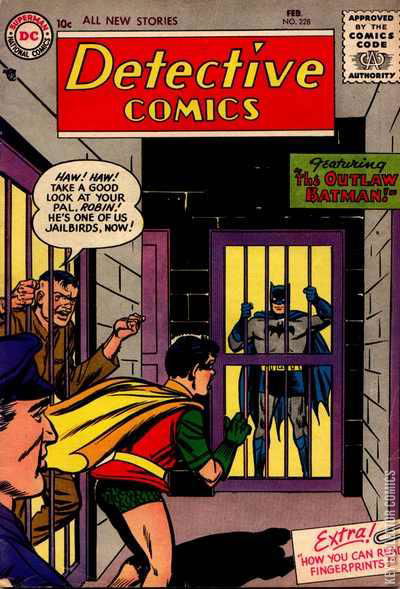 THE OUTLAW BATMAN Batman is seriously injured while trying to capture some crooks and a doctor who witnesses the scene, offers to mend Batman's wounds before giving Batman some medication for his injuries. After that night, Bruce can't sleep without having terrible nightmares in which he commits steals items that he and Robin recently recovered in waking life. Each following morning it is revealed by radio broadcast that the thefts of Bruce's dreams did occur, and Bruce and Dick are left wondering if Bruce is having premonitions of the thefts, or if Bruce is now living as a sort of Jekyll and Hyde. With Robin's help, Bruce is stopped on the third night from stealing from a safe that they recently prevented a safecracker from breaking. To find answers, they go to the doctor that mended Batman after his recent serious blow to the head. In the doctor's office, Batman deduces that the doctor is in fact a criminal in disguise, who confesses his scheme to turn Batman into a criminal with a special drug. With his name cleared, and the criminal behind bars, Bruce is finally able to sleep well at night. THE MACHINE THAT CAPTURED THE PAST ESCAPE TO THE STARS