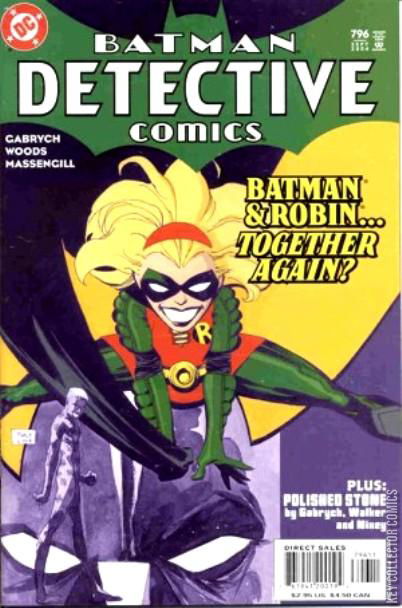 ...AND RED ALL OVER A man looks for a victim on a subway wagon and he finally finds it... Two common thieves are running away from the store they just stole and they're spotted by Batman and his new partner, Robin, who is in fact Stephanie Brown in the role of Robin. Batman and Robin stop the criminals and Robin delivers the stolen goods back to the store. Oracle contacts Batman to tell him about the murder on a subway wagon and the duo get going to the crime scene. Batman and Robin arrive at the wagon, which was separated from the train and they investigate the scene. Batman wants Robin to hone her detective skills and they analyze the blood left in the scene. Batman notices a strange pattern on the blood left and after a brief analysis, he learns that some of that blood belongs to Mr. Zsasz. Batman wants Robin to stay out of the case, but she convinces him otherwise and after a brief change of outfit, they go to the main subway station looking for more clues. They find the trail left by Zsasz, while the killer watches them from the shadows of the tunnels. He spots Robin and immediately he decides she is his next victim. Robin notices something in the tunnel and they discover that it's the corpse of a woman, who has been recently murdered. Batman tells Robin to head back home because the situation has become too dangerous for her. Robin starts walking away and after a few seconds, Robin disappears without a trail. Batman notices and realized that she has been taken by Zsasz. Zsasz is holding Robin and without delay, he tries to slit her throat, but her neck is protected by the new outfit Batman gave her and she manages to free herself from his grasp, but the man knocks her down with a single blow. He is ready to kill her when Batman comes and starts fighting the assassin. Zsasz's physical condition makes him a tough opponent and he manages to dislocate Batman's right arm. Batman breaks Zsasz's nose, but the madman is still capable of fighting. Zsasz gets the upper hand in the fight and he strangles Batman. Robin recovers and dislocates Zsasz's nose completely. Deranged, Zsasz focuses on her and Batman seizes the opportunity to knock him out. After delivering Zsasz to the authorities, Batman scolds Robin for using lethal force against Zsasz, but all he wants is for her to learn that there is always other ways to win than killing the opponent. POLISHED STONE PART 2 At the Iceberg Lounge, Penguin welcomes the new leader of the Hill Gang, Orpheus and his new lieutenant, Onyx. Penguin gives them a table and soon, Batman and Batgirl get inside the establishment, looking for them for the casualties caused by Orpheus' gang. They start fighting and as a result they wreck the Iceberg Lounge entirely. It was all a stage performance in order to make Orpheus and Onyx look important to the rest of the underground community and in the end, the whole group gathers together to plan the next step.