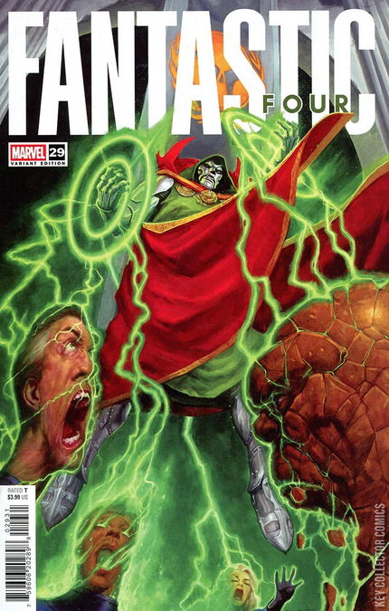 The impossible has happened! DOCTOR DOOM has taken over the world! And the Fantastic Four are NOT going to let that stand. As Reed locks himself in his lab, trying to solve the Problem of Doom, Ben treats Sue to a trip to NYC with their mutual friend, JEN "SHE-HULK" WALTERS, to help get her mind off of things. But tensions after vampires overran the world in their Blood Hunt remain, and when Ben, Sue and Jen find themselves on the wrong side of mob justice, they face a choice...and it's one they will not be able to take back!