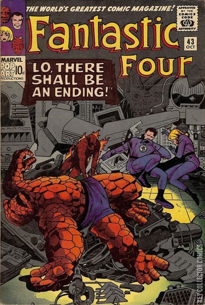 LO! THERE SHALL BE AN ENDING! After rescuing the brainwashed Thing from the Frightful Four, Mister Fantastic and the Invisible Girl flee from the Wizard and his other seemingly brainwashed thrall, the Human Torch. When they escape in Johnny's car, the Wizard decides to break off pursuit and free his other Frightful Four teammates, who were taken out of the fight by his own anti-gravity discs. After the Wizard and the Torch get them down, the Frightful Four realize that the Torch had deliberately hampered them whenever they tried to harm one of his former teammates. Reed and Sue return to the Baxter Building, where the Thing begins to fight back. They quickly subdue him with knockout gas, and Reed begins the long task of trying to find a cure for the Wizard's brainwashing process. Meanwhile, the Wizard and Medusa inspect the ID Machine, and confirm what the Wizard suspected: someone tampered with the machine during the battle, and the Human Torch has only been pretending to be under their control. They ambush the Torch and knock him out, so the Wizard can prepare the final phase of the revenge against the Fantastic Four. At the Baxter Building, Reed has finished constructing a device that he hopes will revert Ben's personality to normal. But when Reed activates the device it overloads and explodes. Reed rushes in to pull the control helmet from Ben's head before he is permanently harmed, with Sue throwing a force field around him for protection. They then drag Ben into a nearby bed where they can only hope that he will awaken cured. At the Latverian Embassy, Doctor Doom inspects his hands and finds that they have healed after his last battle with the Fantastic Four. Doom is furious over such an ignominious defeat, but he has already planned a suitable revenge, as his Emotion Changer ray is complete and ready to use. Back at the Baxter Building, the Frightful Four's anti-grav ship lands on the roof and the villains begin infiltrating the building. Reed completes his tests and concludes that the Thing has been cured, just as the Frightful Four ambush them. The Wizard shows Reed and Sue that he has Johnny trapped outside on a massive anti-gravity disc. The Wizard then threatens to send Johnny up into space to suffocate unless the Fantastic Four surrender. When Reed tries to save Johnny, the Wizard and his cohorts show that they mean business. The Wizard then gives Richards ten seconds to surrender. However, before this time is up the Thing awakes and attacks the Wizard, rending the villain's armor with his bare hands, destroying his anti-grav control unit. As Reed and Sue attack their foes, Johnny is able to break free from the now deactivated disc and join the fight. As the battle rages, Medusa decides to retreat. The Torch sees her, but fails to prevent her escape in the Wizard's anti-grav ship. With Medusa's departure the survivors of the Frightful Four are easily subdued. But when Reed telephones the police to have them send an officer over to collect the prisoners, the officer on the phone thinks it's a prank call. After Johnny leaves to drop off their foes with the authorities, Reed and Sue check on Ben and welcome him back to the group. Ben is surprised by this, after the hatred he displayed earlier. But Reed points out that Ben couldn't help himself, and he is welcomed back to the team.