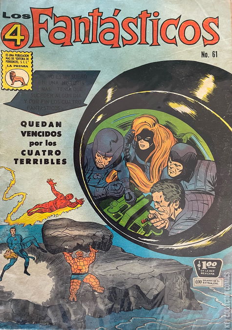 DEFEATED BY THE FRIGHTFUL FOUR! Reed, Ben and Johnny are busy looking over enlarged photographs of the Skrull galaxy for research when suddenly they are interrupted by Sue who playfully reminds them that there are wedding plans to go over. Although she is invisible to the eye, they manage to grab her and make her give up with her pranking. With the merriment over, Johnny decides to head off to go on a date with his girlfriend Doris Evans. As he flies away from the Baxter Building he just misses the Wizard who is passing by. Their foe then goes to land at the secluded cabin where the Frightful Four are hiding out. There he is attacked by the Sandman, but is repelled by the Wizard's anti-gravity devices. Paste-Pot Pete -- having now renamed himself the Trapster -- lunges in to test out his new paste-based traps. After they succeed in subduing the Wizard, he shows his supremacy by throwing the Frightful Four around with his anti-gravity weapons.�� Soon their launch their next plot against the Fantastic Four, it begins with Medusa confronting the Invisible Girl while she is out picking dress designs for her wedding. Caught off guard, Sue is easily captured and the news of her kidnapping quickly spreads. When the Thing learns what happened he rushes back to the Baxter Building to tell Reed and Johnny what he has learned only to find that Reed is already busy trying to track the Frightful Four down.�� Meanwhile, the Frightful Four have landed their ship on a former nuclear testing site on an atoll in the South Pacific. There the Wizard shows his comrades and prisoner his greatest invention yet, the Q-Bomb, which he intends to use against the Fantastic Four. Back at the Baxter Building the FF are desperately trying to locate Sue when suddenly their radars pick up a ship flying their way. They attack it, but only succeed in getting Johnny captured by the Frightful Four as well. As their foes flee, Reed and Ben follow after them in the Pogo Plane.�� The Fantastic Four are caught off guard when they land on the atoll and their enemies attack. Although they soon start getting the upper hand, the Frightful Four flee leaving the heroes to go and rescue Sue. However with the Pogo Plane having been destroyed in the fight, they have no way off the island. As the Frightful Four speed away, the Wizard sets the bomb to explode. Unknown to him the Fantastic Four are thrown clear from the atomic blast thanks to a force field put around them by Sue. Knocked unconscious by the blast the Four are lost at sea as the Thing slowly begins to revert back to human form.