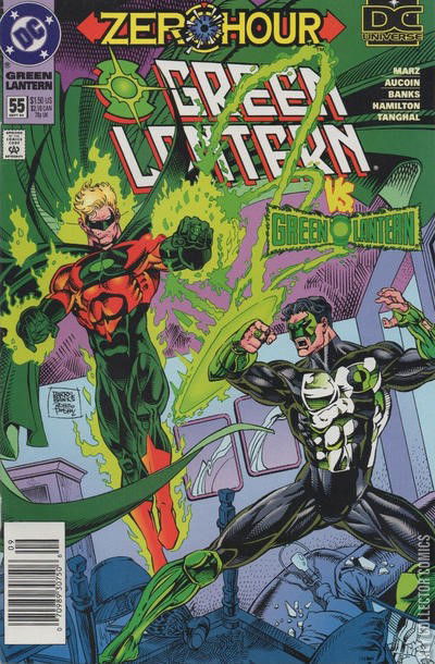 Kyle is being brutally assaulted by Major force since his ring has no power. Despite this he does not back down. Major force continues his beating until pulling out the green rock to get some answers before killing Kyle. The green rock charges Kyle’s ring and forms itself into a power battery. With his powers restored he steamrolls Major force then has him strapped into an electric chair so he can get some answers about who sent him and why Alex was killed.Right before he can get those answers police arrive and try to take Kyle in, he’s in no mood to be trifled with so he tells them MF killed Alex and that’s all they need to known they try to take him in but he flies off. He stops on a roof, confused, angry, hurt and regretting ever accepting the power ring. He goes to his apartment where he meets Alan Scott. He lashes out at Allan thinking him another assassin. Allan calms him down and tells him the history of the green lantern corp. and Hal’s descent into villainy. Kyle is thankful for the info but needs time to be alone. Allan leaves him to grieve and process all he info.Kyle then decides not to get rid of the ring because Alex wouldn’t want him to, he decides to press on despite the pain he feels to make her proud. Right then metron and superman arrive before him, he’s being recruited to stop parallax. Zero Hour