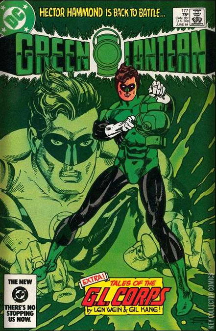 "Interlude!" (Wein/Patton/Smith/Tollin/DeGuzman) - After saving sailors on the S.T.A.R. tanker Hal Jordan is approached by Tawny Young and asked about if he had ever lost his powers before. Hal tells the story, in a flashback, about the loss of his power ring during a robbery. He then tracks down the culprit, Hector Hammond. The two fought and Hal’s willpower outlasted Hectors. Back in the present, Hal finishes telling his story just in time to save a passenger jet from crashing. Meanwhile, the Guardians learn of a threat to Omnicron Ceti IV and summon Hal to Oa. Most the story is a reprint of issue 128."Final Duties" (Wein/Kane/Tollin/Oda) - The story of Kwo Varrikk and his final 24 hours as a green lantern. New framing pages tacked on to reprint. Vs Hector Hammond.