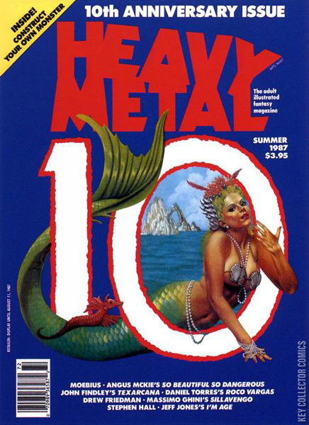 Summer - Vol. 11 No. 2 Cover by Rowena Morrill. Stories and Art by Daniel Torres, Massimo Ghini, John Findley, Angus McKie, Moebius, Jeff Jones and Drew Friedman. Summer 1987. The adult illustrated fantasy magazine. In this 10th anniversary issue: "The Distant Star"; "Sillavengo"; "Texarcana"; "So Beautiful So Dangerous"; "The Gold Digger"; "I'm Age" (1 page); and "Tor Johnson In the Country" (1 page, reprint). 112 pages, PC/PB&W. Cover price $3.95.